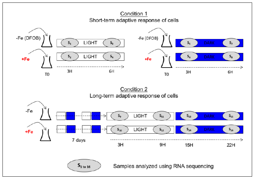 Etude de la différence +Fe / -Fe à 9h en lumière condition 1