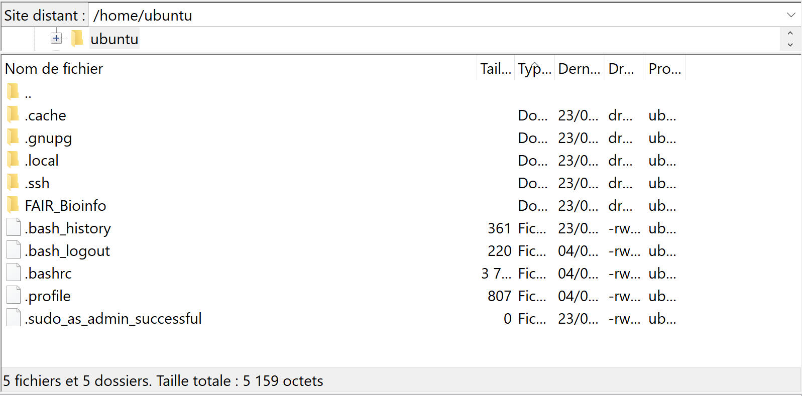 Si en ssh : ubuntu@134.158.247.116